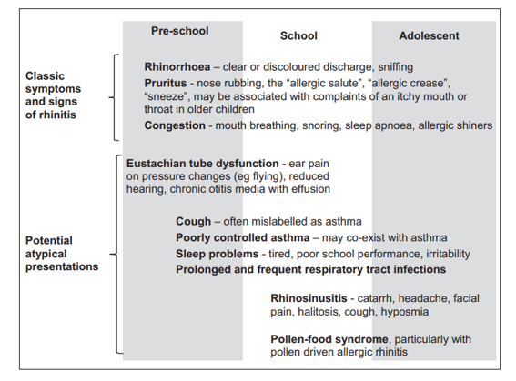 - respiratory – chronic catarrh, cough, persistent clear rhinorrhoea