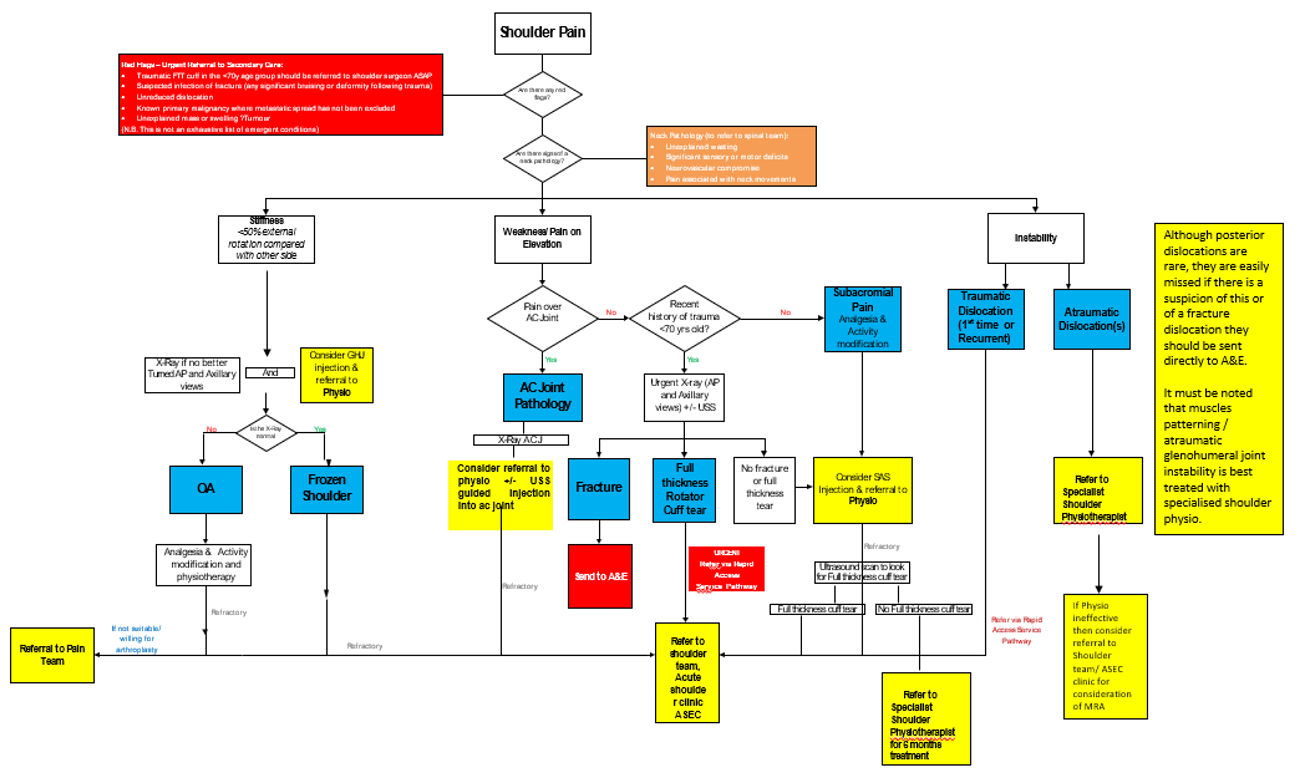 - If moderate / severe pain – plain X ray and consider injection and ultrasound