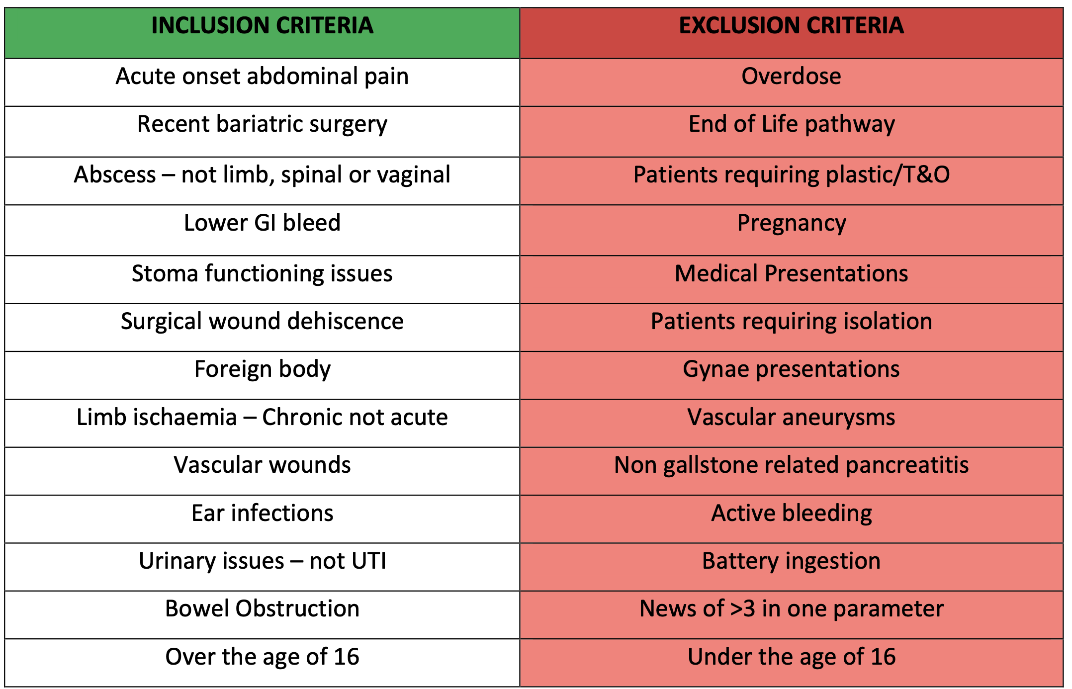 SAU Referral Criteria